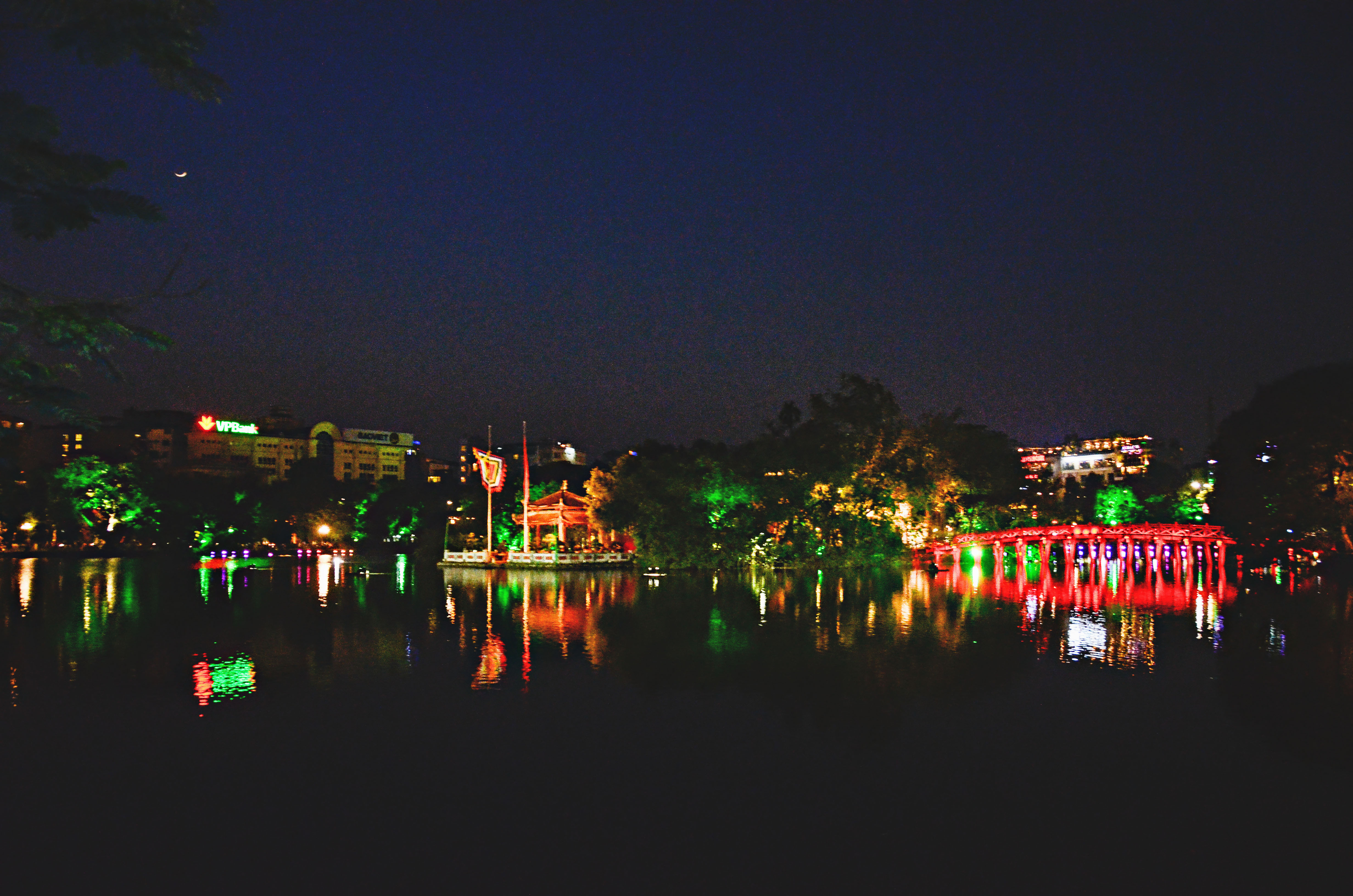 We spent the rest of the afternoon and early evening hanging out at a bench by the lake and people-watching. We wanted to soak in the atmosphere, and see the bridge lit up like the night before.
