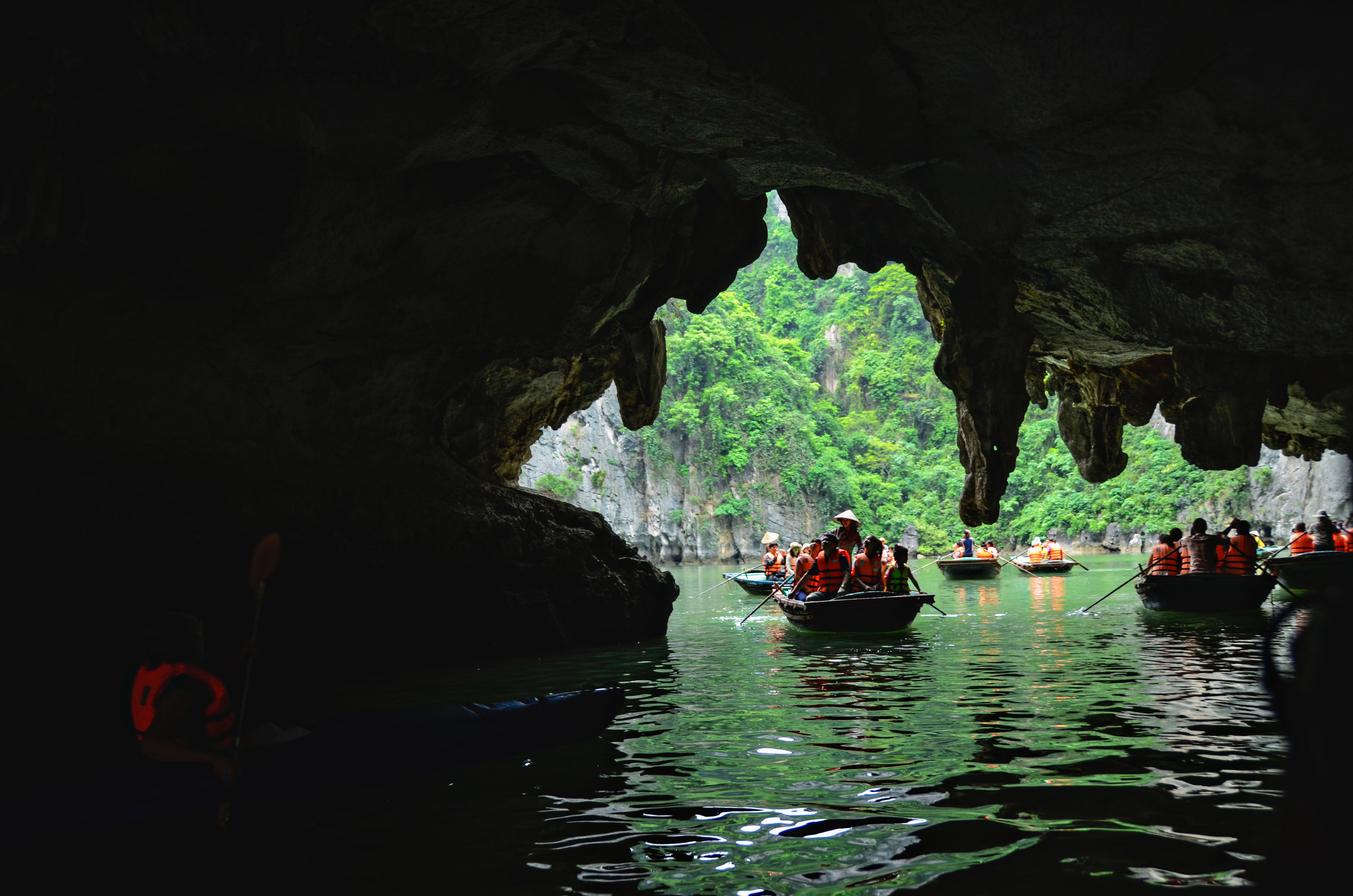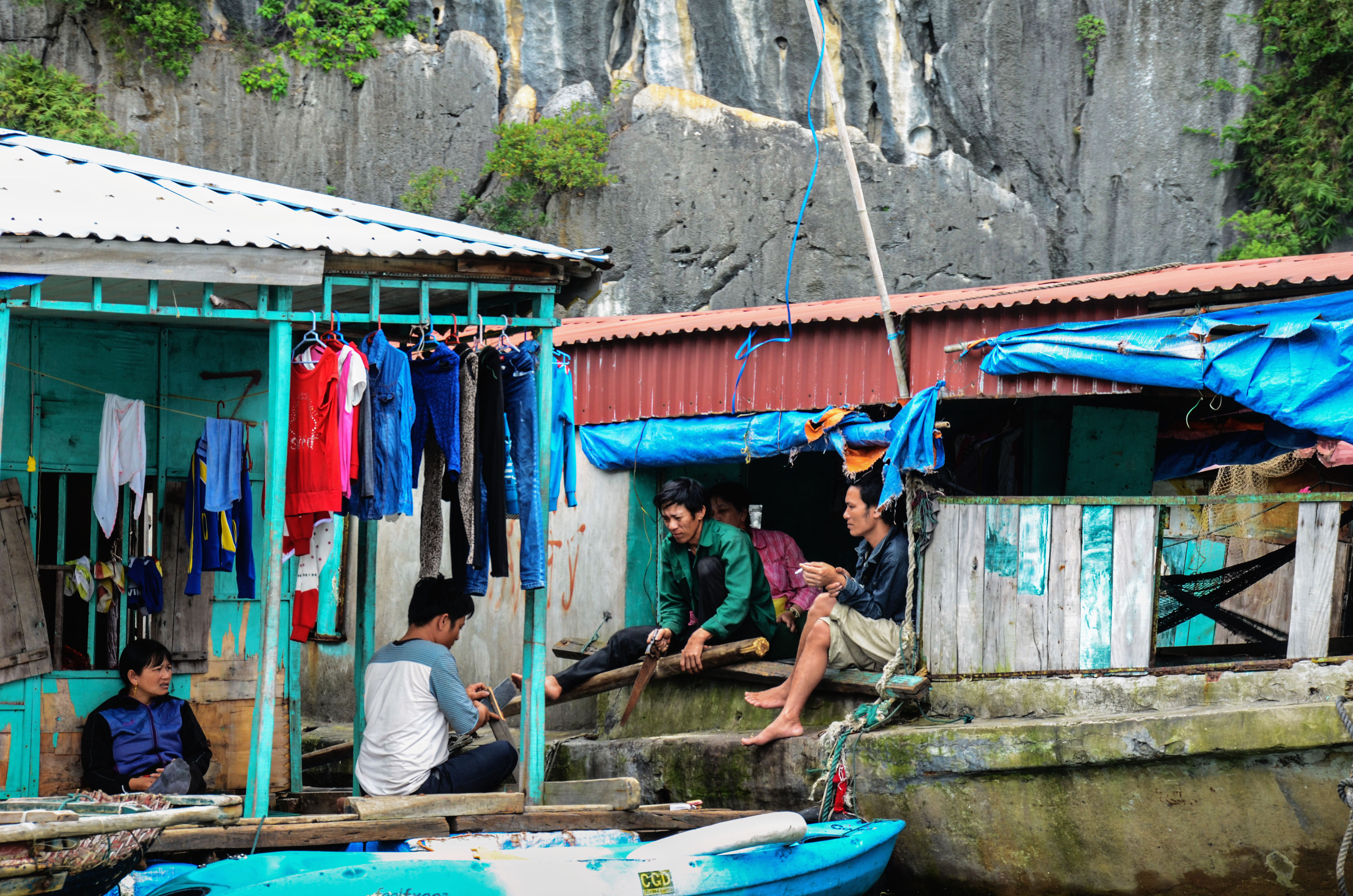 Eating delicious Vietnamese lunch amid the jolly chatter of passengers, with a cool breeze on your face, while the vast bay beckoned against the gloomy sky, was probably the highlight of the trip. After that it was all just.. meh. Don’t get me wrong, Halong Bay was beautiful, sunshine or no. It’s just that.. that was it. There’s nothing else to do but look. Yes, there’s kayaking, but it was just in a small area. The village nestled at the base of the rocks was interesting enough, but it was also pretty small, and we didn’t have the chance to get any closer or to explore it longer. And there was the cave, but it was a straightforward walk-through, like being in a museum or a building. There was very minimal activity. It’s not a bad thing, just not what I was expecting.