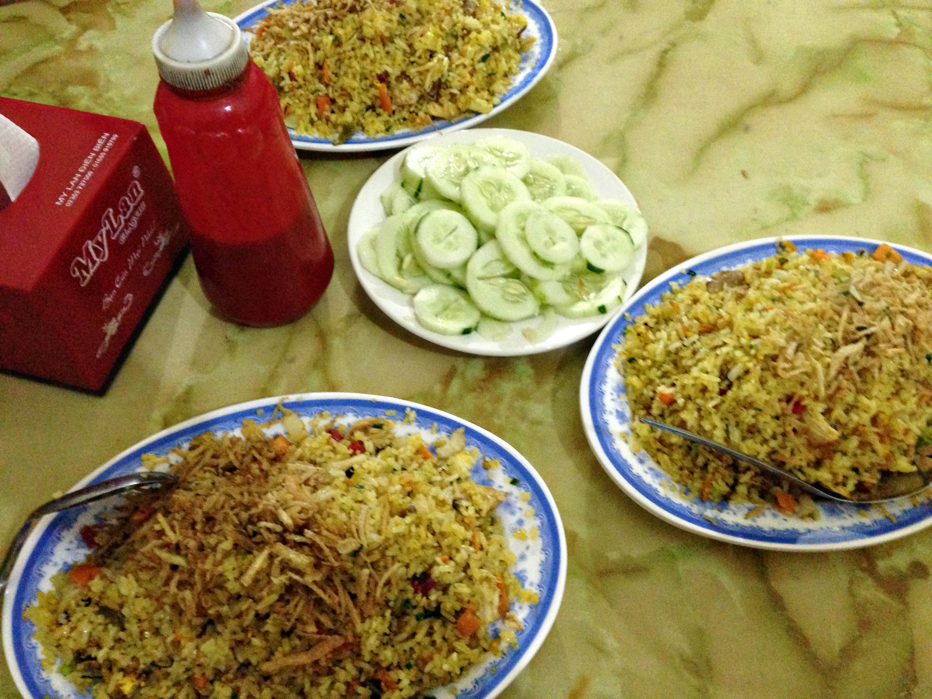 Around 9pm, the three of us finally excused ourselves because we desperately needed real food already. We found a place right beside our inn. In typical Dien Bien Phu fashion it had litter all over the floor, but we didn’t mind. We asked for fried chicken rice and didn’t shut up til we were sure the cook understood we meant chicken. It was a great meal, real comfort food. It was simple, but it certainly saved the day for me.