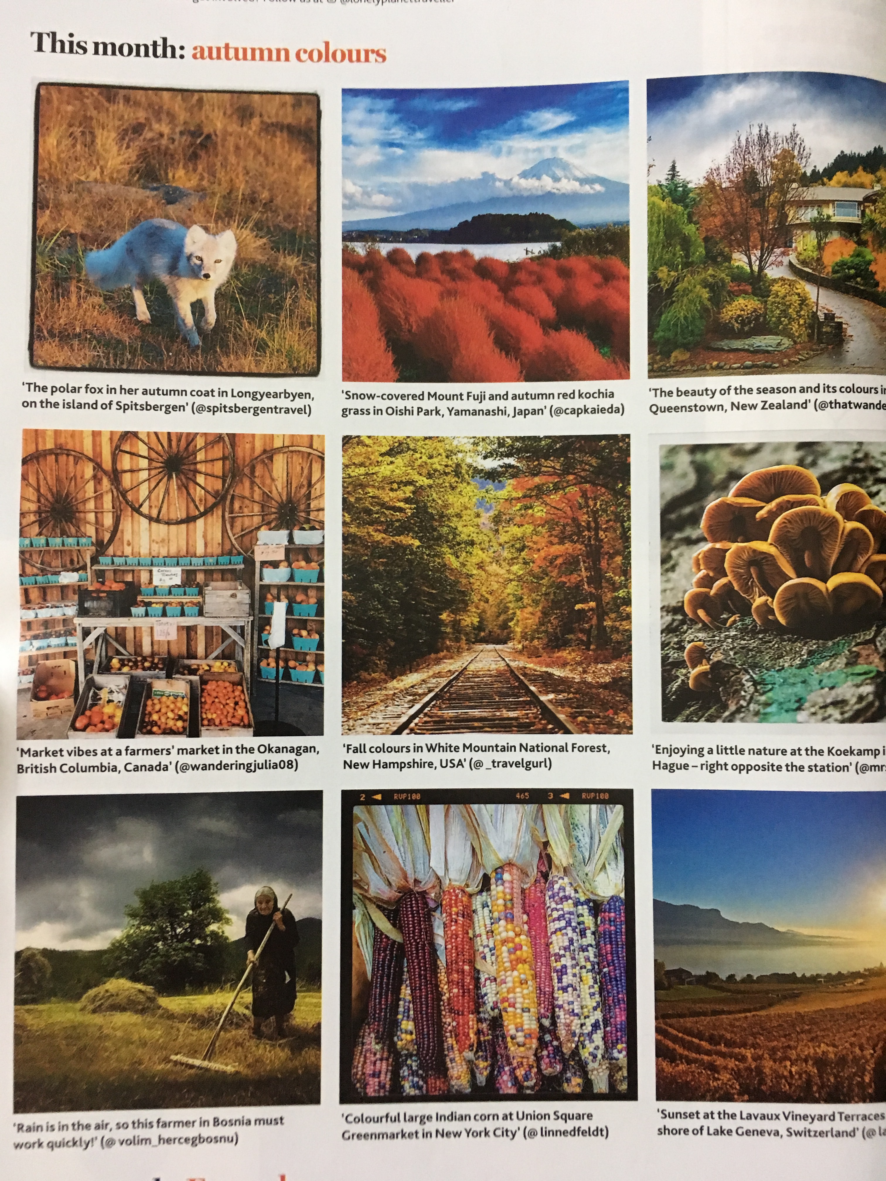 That’s right, I just got a photo published on Lonely Planet Traveller’s November issue. It’s a photo of a farmer’s market in the Okanagan Valley, which was included in their monthly Instagram picks for #LPPostcards.