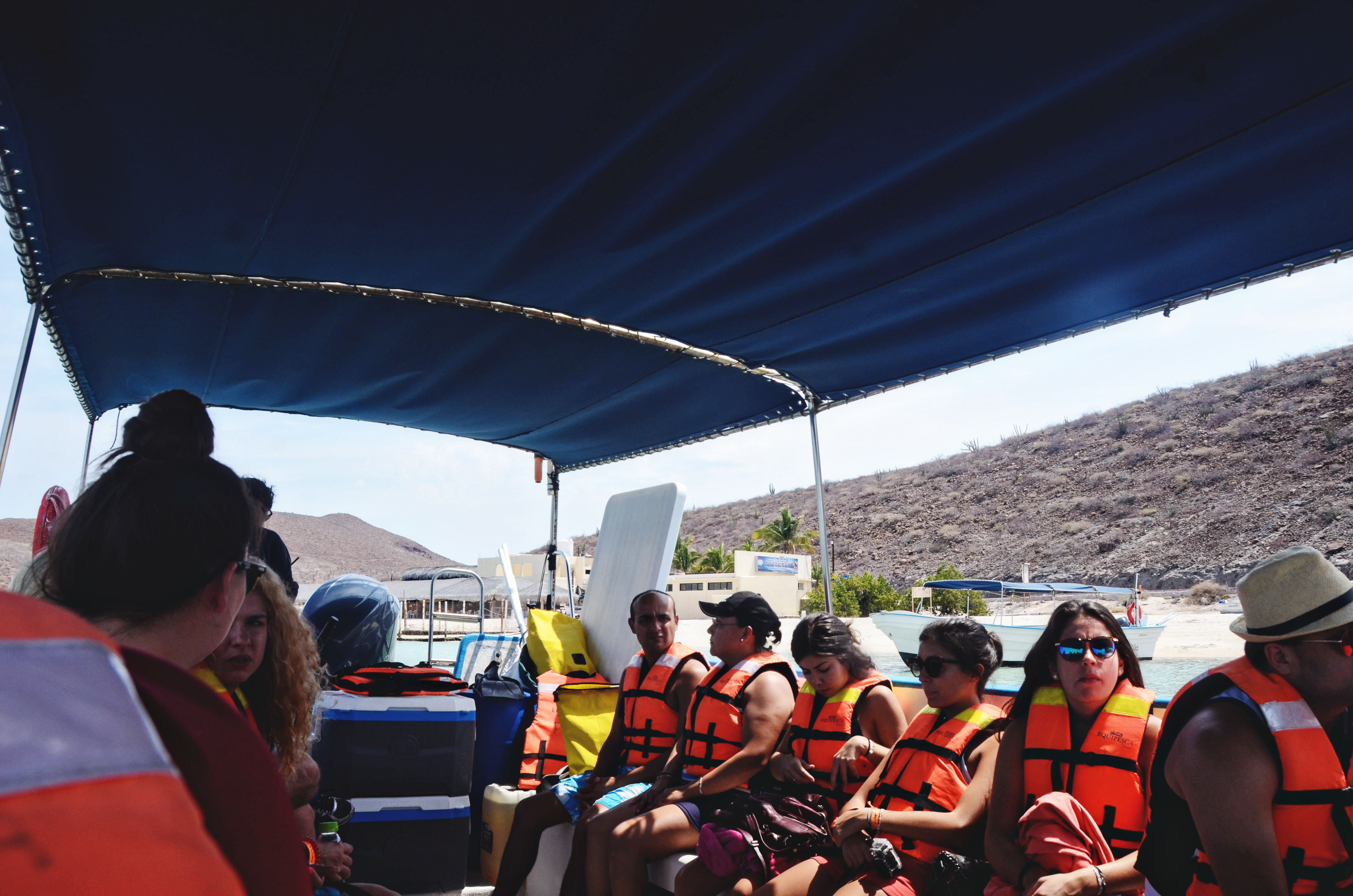 The trip started in the northern coast of La Paz, where we boarded a small boat. There were about 20 of us, plus the tour guide and boat captain. Our tour guide from Eduardo’s Tours was pretty amazing, easily switching between Spanish and English for the benefit of all his guests, shooting information one after the other but not in a robotic, scripted way. He shared facts and stories about the evolution of the volcanic islands in the Bay of La Paz and the Sea of Cortez. It was a pretty impressive start to a spectacular day.