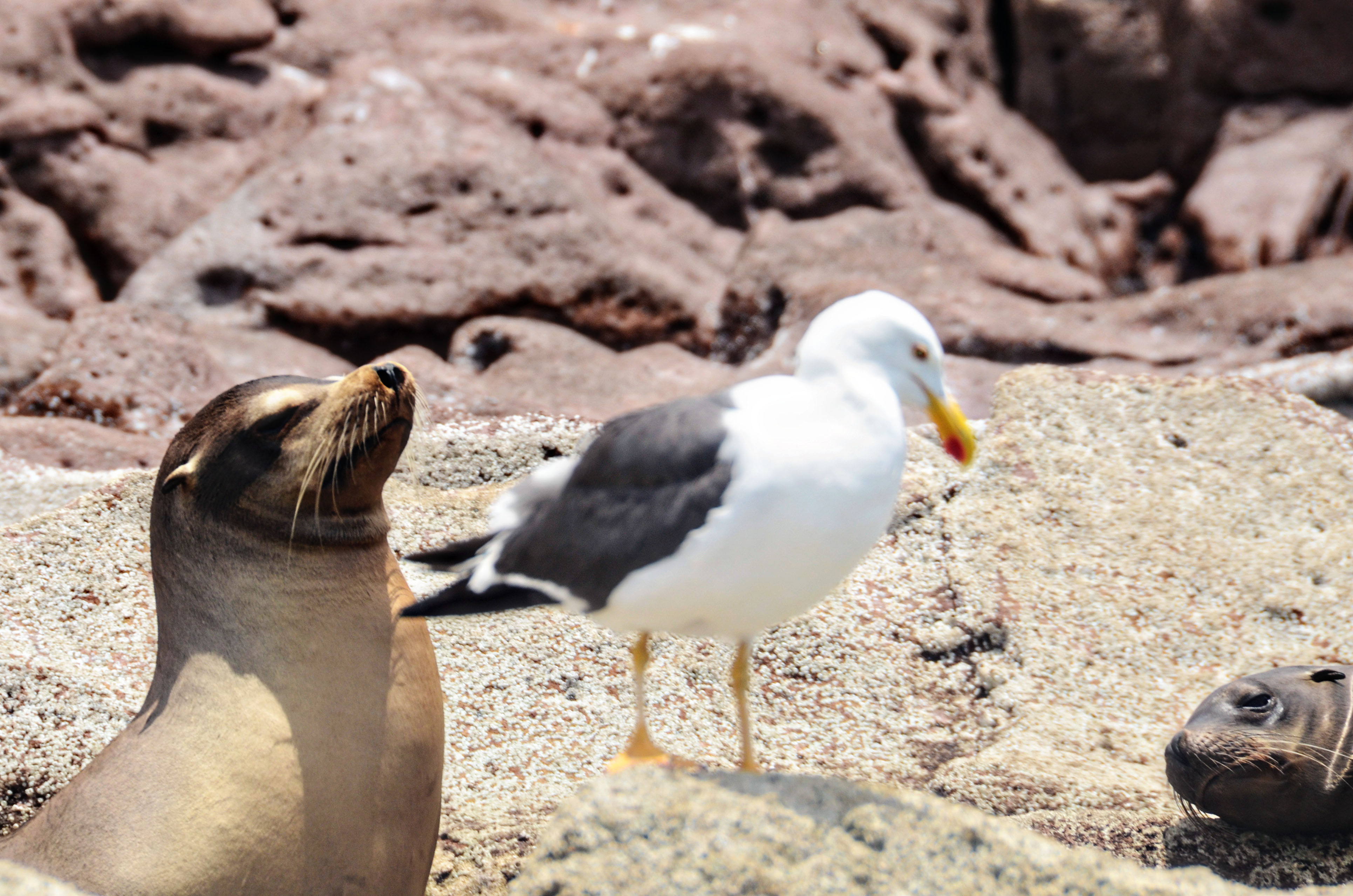The boat anchored a little ways off to give the creatures some space, then the passengers prepped for an hour or two of snorkeling. Unfortunately (or fortunately, depending on how you look at it), they no longer allow people to play with the sea lions. It turns out that a few years back a man was “playfully bitten” resulting in severe injuries. To avoid another situation, all tour operators were forbidden to let their guests come near the sea lions or else it was game over for everyone.